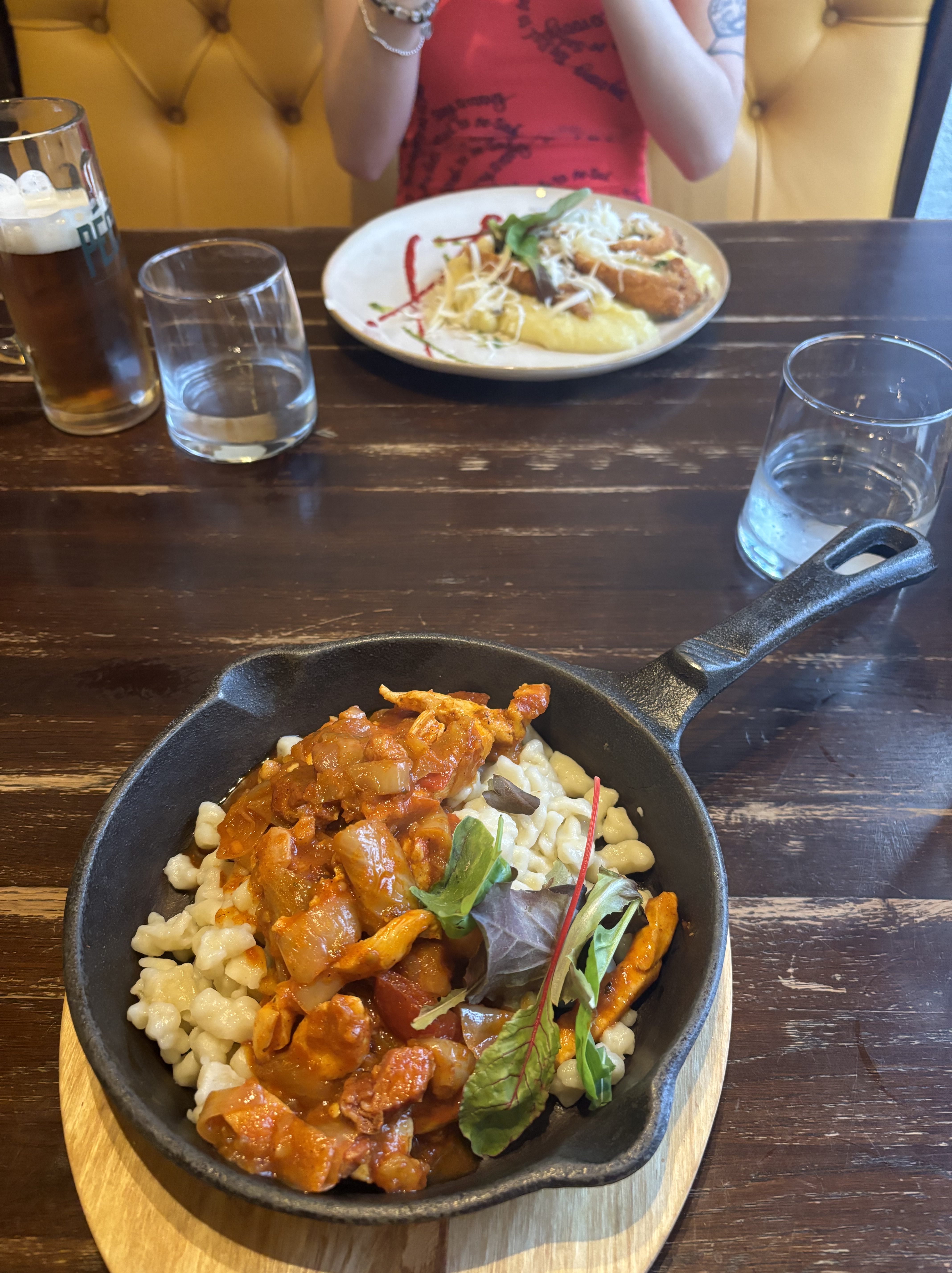 This was so good we went back again to each try each other’s previous choices which were Kijevi Style chicken with mash (the nicest mash I’ve every had – my daughter agreed and she is something for a mash connoisseur!), and the Chicken Goulash with home made dumplings. Very friendly service and friendly between other customers I guess due to us all having something in common. So relaxing to be able to have absolutely anything off the menu. I can’t speak highly enough if this place, its awesome to be able to sample the local cuisine and not be excluded. We did notice there were a couple of locals in here eating alone who were clearly regulars, to me a sign of quality. If I had one complaint it would be to say that their aircon was super cold, we had to sit with jackets on but could have just been us acclimatising! This was our favourite of the week so we chose it for a return visit on our final night in the city. Food was filling and saw us through the Coldplay concert we attended that evening. A selection of gluten free beers was also available.