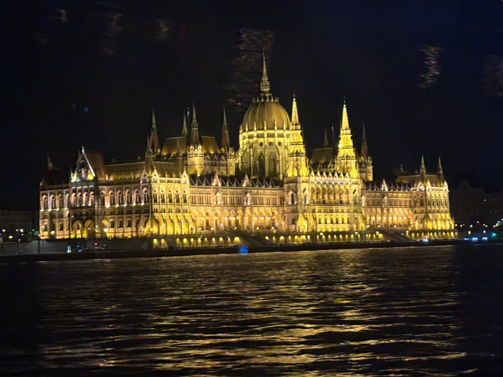 There are lots of boats along the banks of the Danube offering various packages of food and drink. If you are looking for unlimited Prosecco, there are plenty of options which can be booked in person or online. We had checked out a few options on our walks earlier in the week and could see that the time slots get booked up early on so we decided to book online. We wanted to see the sights at night and a drink would be nice but we didn’t want unlimited drinks, I didn’t feel that would end well!