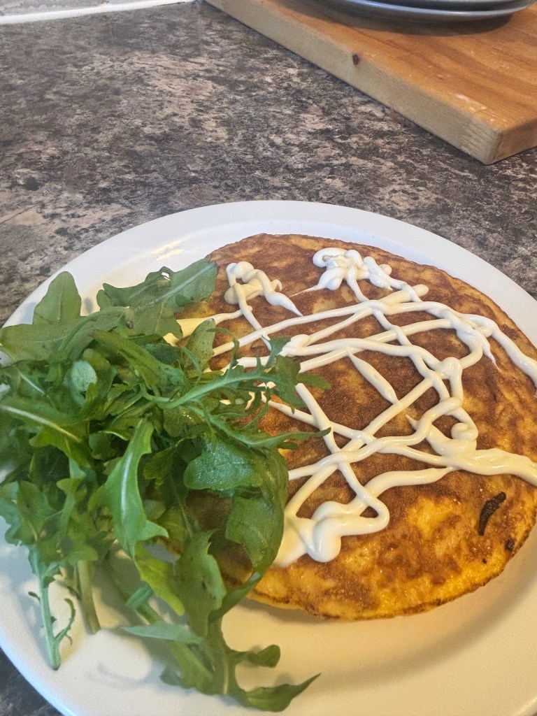 - Once you are confident the tortilla is in once solid piece its time to flip it. I find the best way to do do this is to slide it out (same way up) onto lid of the frying pan so the uncooked side is still facing upwards. You can then flip it back into the pan so the uncooked side is on the bottom.